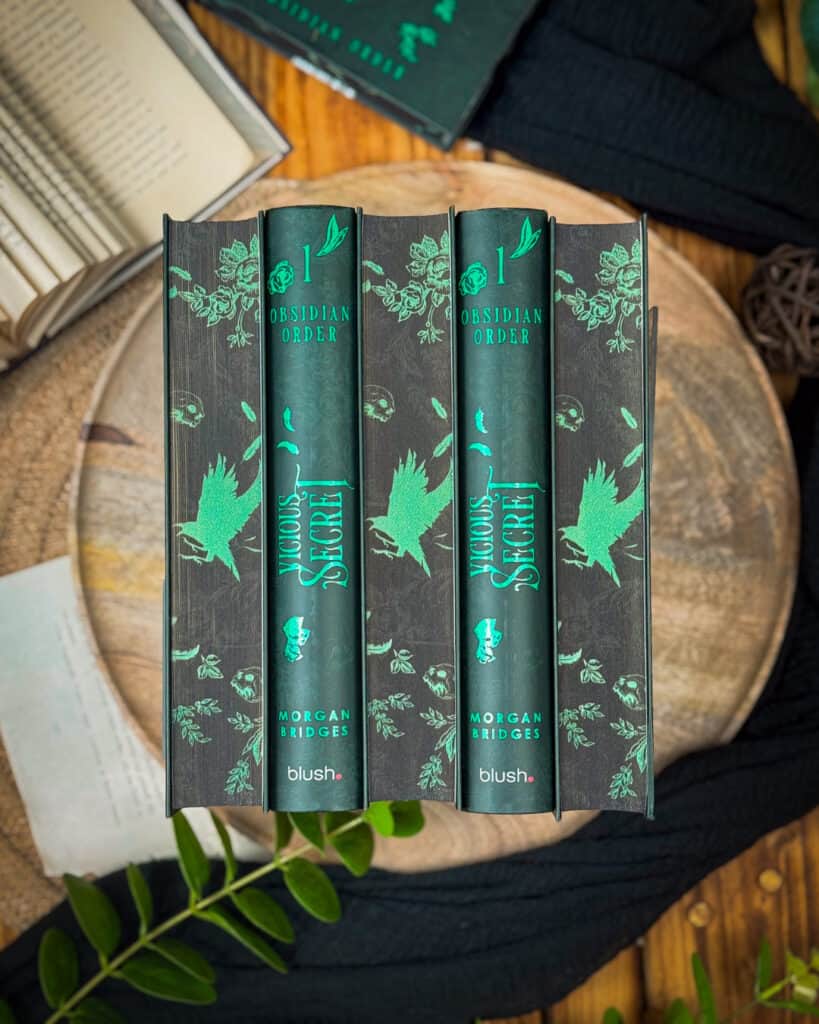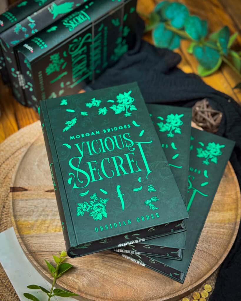 - VICIOUS SECRET von Morgan Bridges als Hardcover Exklusivausgabe ohne Schutzumschlag mit einem exklusiven neuen Cover mit Heißfolienprägung auf dem Bezug gestaltet von @jaqulinekropmanns.coverdesign, einem exklusiven Vor- und Nachsatz gestaltet von @durinli sowie einem exklusiven Farbschnitt gestaltet von @jaqulinekropmanns.coverdesign