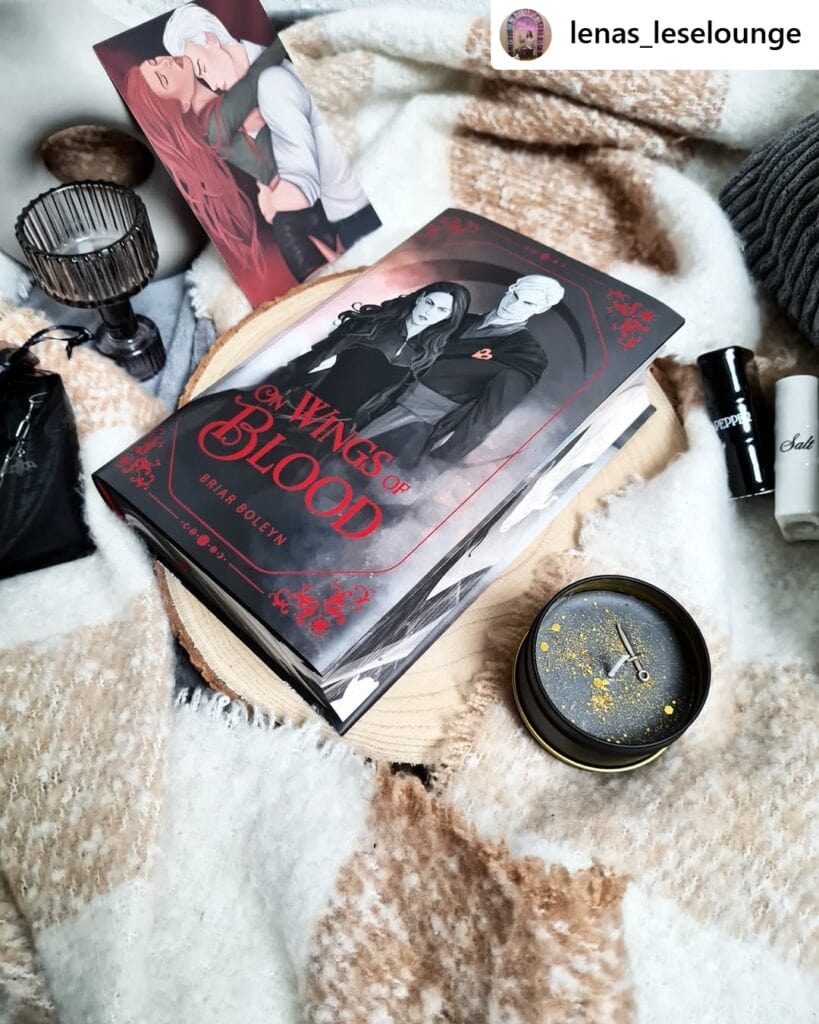 - ON WINGS OF BLOOD von BRIAR BOLEYN als Exklusivausgabe als Hardcover mit Schutzumschlag als Wendecover mit Originalcover vom Verlag und exklusiven neuem Cover gestaltet von @flyora.art auf der Innenseite, einer exklusiven Prägung gestaltet von @jaquelinekropmanns.coverdesign, einem exklusiven Vor- und Nachsatz sowie einem exklusiven Farbschnitt gestaltet von @flyora.art