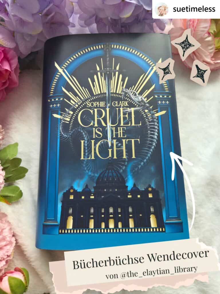 - CRUEL IS THE LIGHT von SOPHIE CLARK als Exklusivausgabe als Hardcover mit Schutzumschlag mit einem Wendecover mit Originalcover vom Verlag und exklusiven neuem Cover auf der Innenseite gestaltet von @the_elaytian_library, einem exklusiven Bezug mit Prägung gestaltet von @the_elaytian_library, einem exklusiven Vor- und Nachsatz gestaltet von @meridyan_art und einem exklusiven Farbschnitt gestaltet von @flarity.art