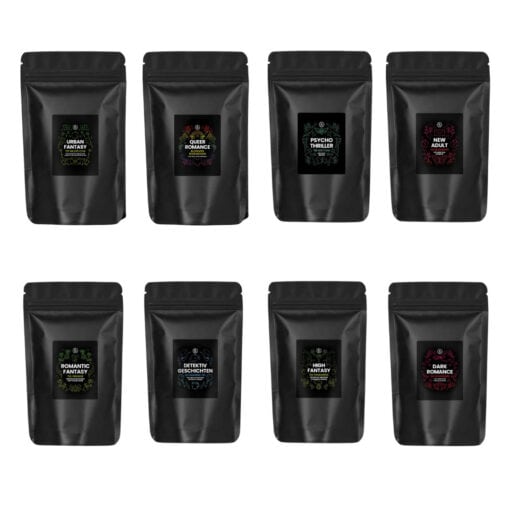 Taucht ein in die magische Welt des Tees und lasst euch von sechs einzigartigen Sorten verzaubern, die euch in verschiedene Buchgenres entführen. Jede Tasse erzählt ihre eigene Geschichte und ist der ideale Begleiter für eure literarischen Abenteuer. Ob spannende Krimis, romantische Liebesgeschichten oder fesselnde Fantasy – unsere Tees bieten das perfekte Aroma für jede Lese-Stunde. Alle Sorten sind vegan, zuckerfrei und natürlich, damit ihr ohne Kompromisse in euer nächstes Lesevergnügen eintauchen könnt. Lasst euch von unseren Tees auf eine unvergessliche Reise durch die Welt der Bücher mitnehmen!