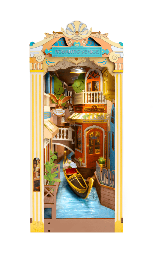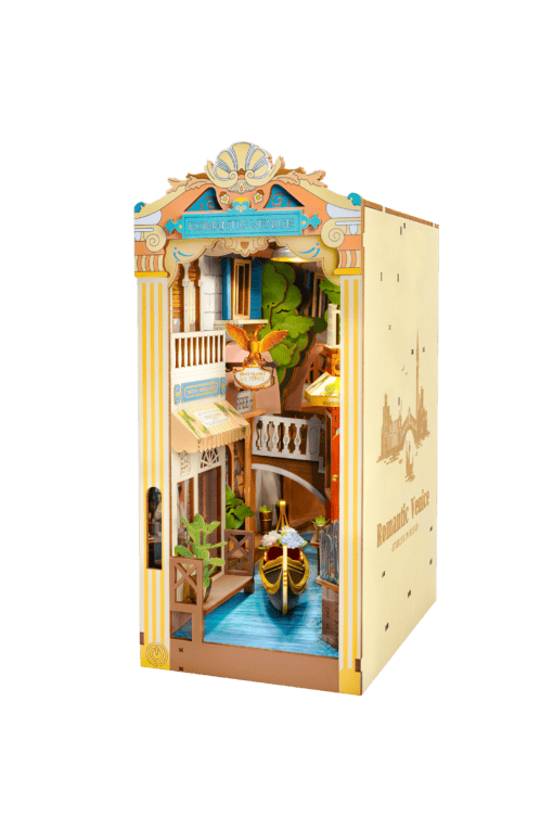 Entdecke "Romantic Venice" – ein fesselndes DIY-Diorama von Robotime mit 110 Teilen. Ideal für Bücherliebhaber wie dich, ein echtes Juwel im Regal mit Beleuchtung. Alles für den Zusammenbau ist in der Box mit einer einfachen Anleitung enthalten. Tauche ein in die Verträumte Stadt Venedig, mit ihren Kanälen und Gondeln.